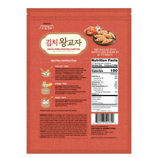 KIMCHI, PORK & VEGETABLE DUMPLINGS are a quick and easy-to-prepare appetizer or entrée add on.